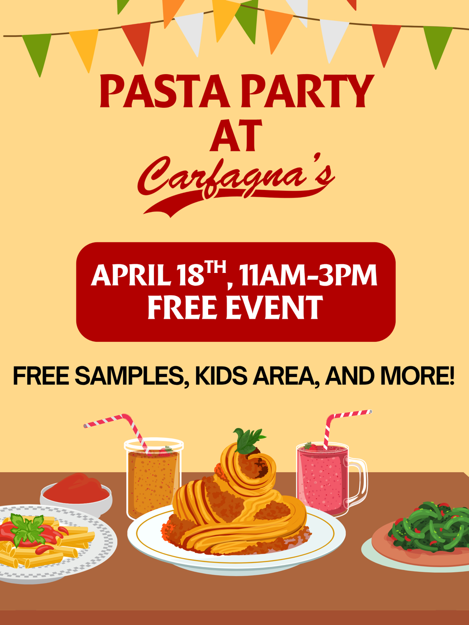 Join us for a delicious Pasta Day celebration at Carfagna’s! RSVP or ticket is NOT required – however, it does help us plan!